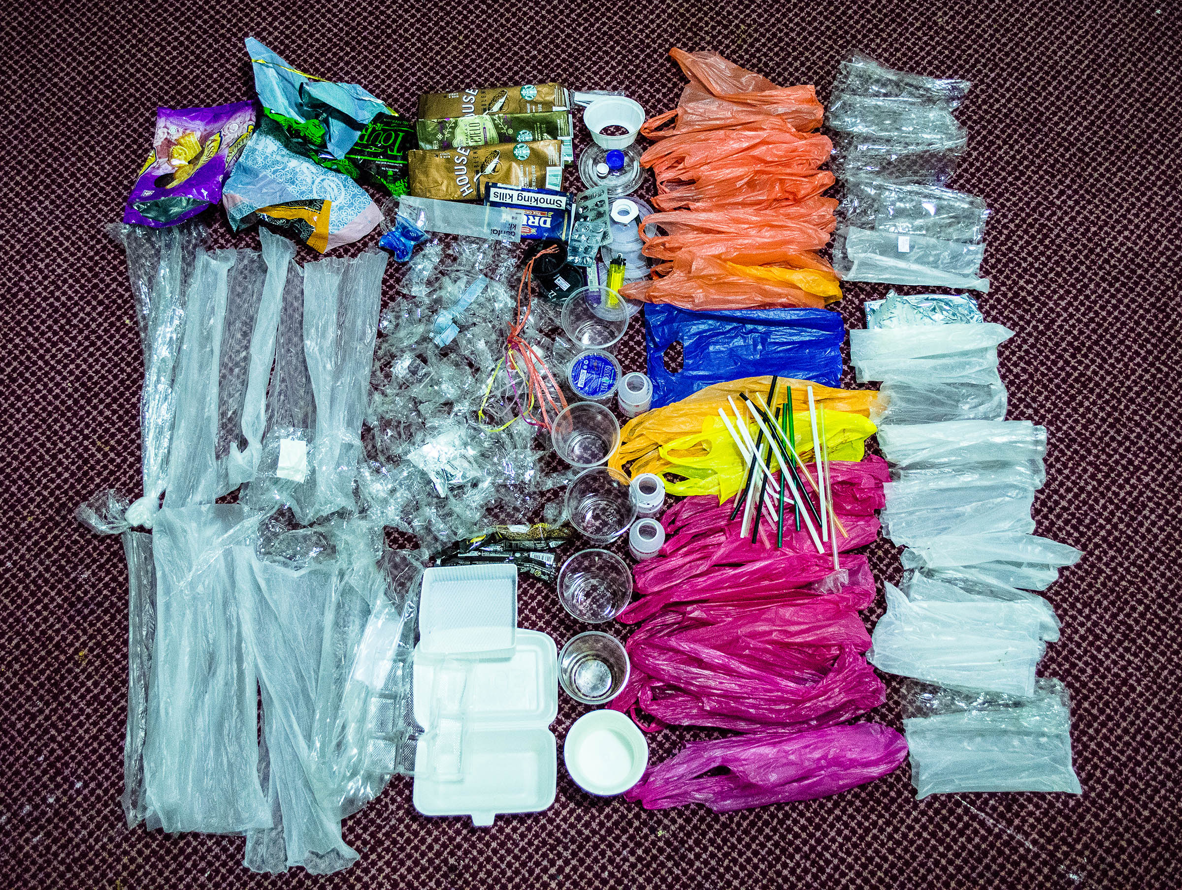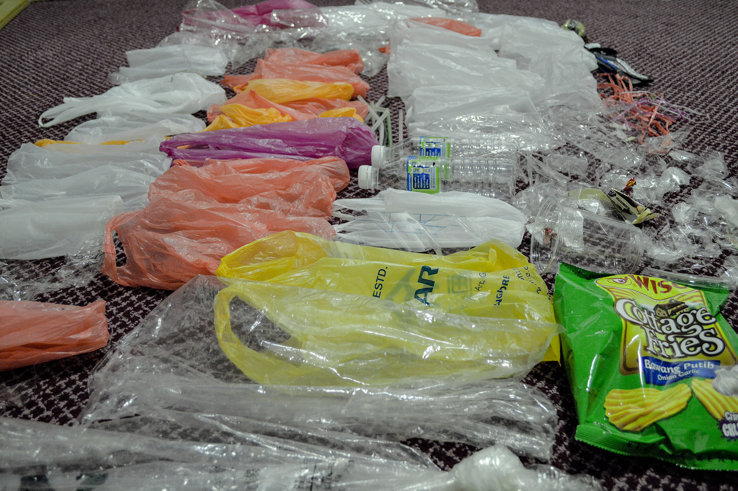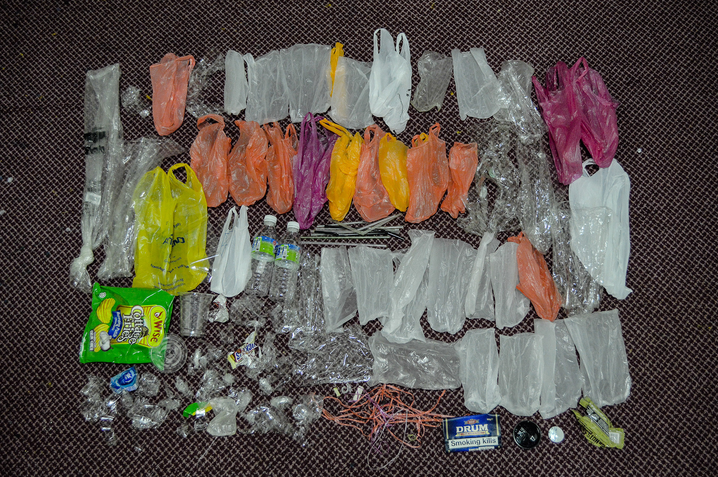In my installation I’d like to show viewers what a full year of plastic that I use, looks like. I’m only one person and from what I gather the installation will look quite impressive yet awful at the same time. I want viewers to imagine how much plastic is used by the 7.5 billion people on this planet. It’s used in packaging tissue papers. It comes in cigarette boxes. It’s used in take-away food and drinks. The stuff that wraps the fruits you buy. The list goes on and on to no end.