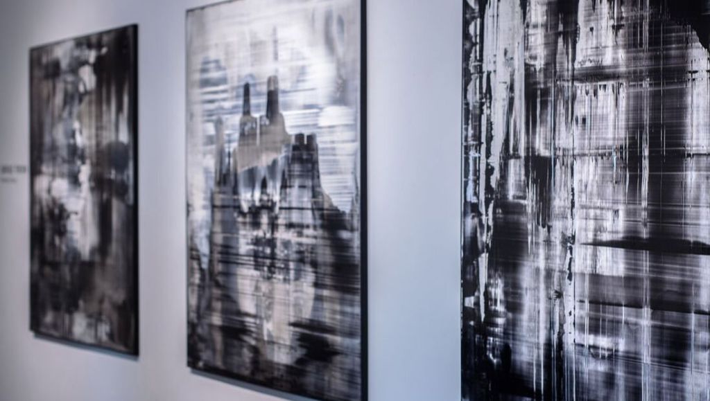I set out to make these works on aluminium at the beginning of 2020. Developing the work through my experimentations with various mediums and surfaces, the results intrigued me. With these recent works, I have let go of the need to have things opaque and allowed the mediums’ transparency to show through. I wanted to highlight the reflective quality of the aluminium panels, finding a balance between form and suggestion.