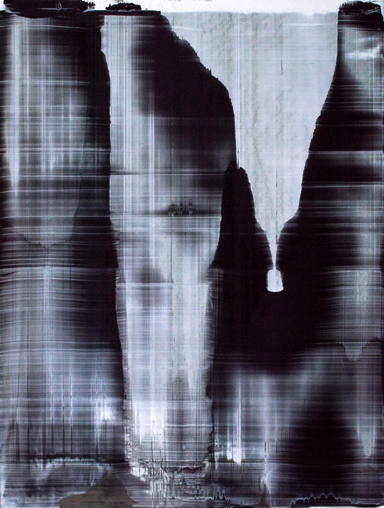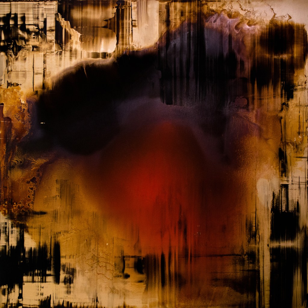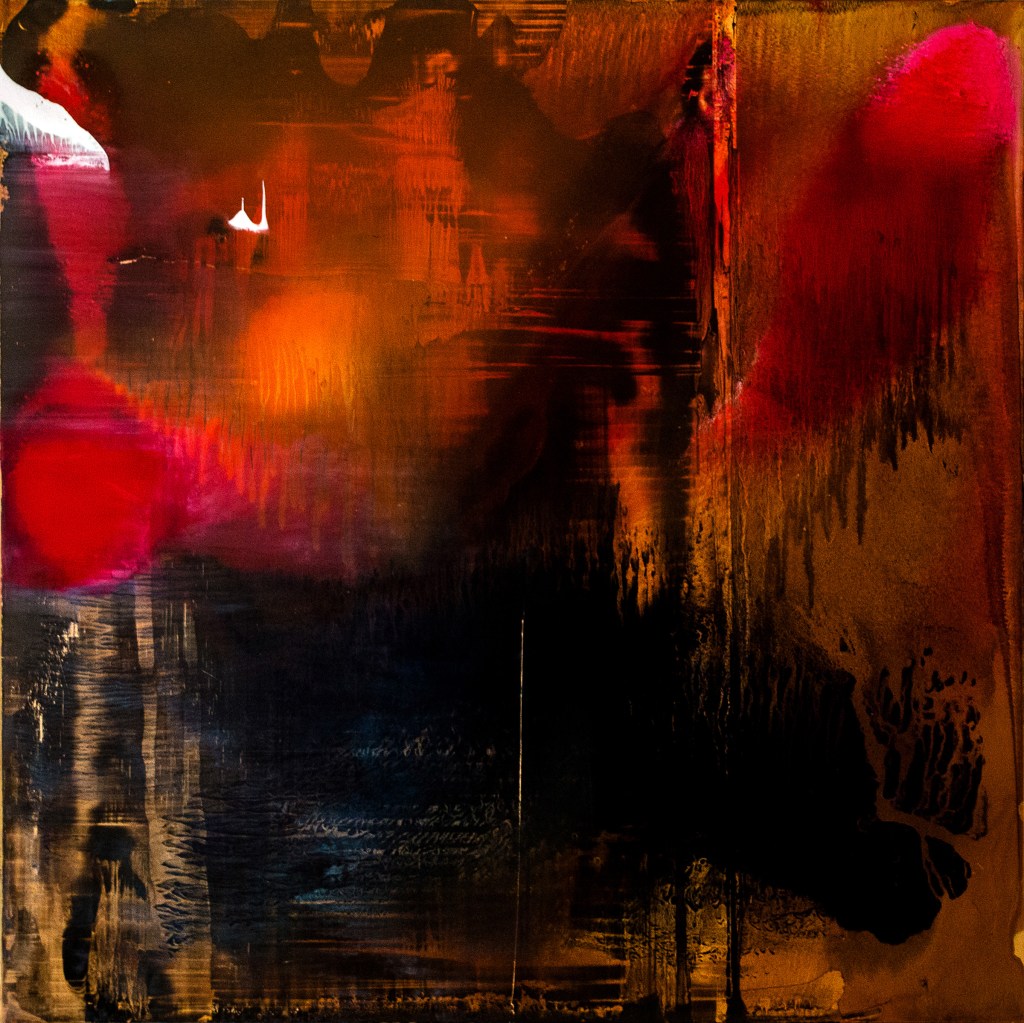 As I make these works I can’t help but think about light, particles and the way consciousness affects these things on a molecular and atomic level. The ‘Double Slit Experiment’ has shown us that light behaves and changes its nature from particles to waves – depending on whether we observe them or not. From recent global experiments with plants, it has also been observed that our frequencies, intent, sound waves and thoughts affect the behaviour of living things. That is to say, in my own personal practice; my consciousness affects the work. For example, the type of music I play in the studio : Influences my moods, which in turn, influences the work, and how the oil and mineral spirits – in the beginning – inert substances, wait patiently for an energy source, a murmur, which will determine its course in nature and the unfolding of its purpose.