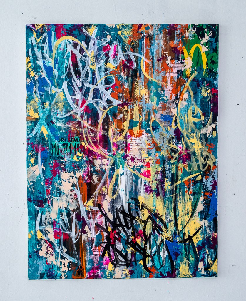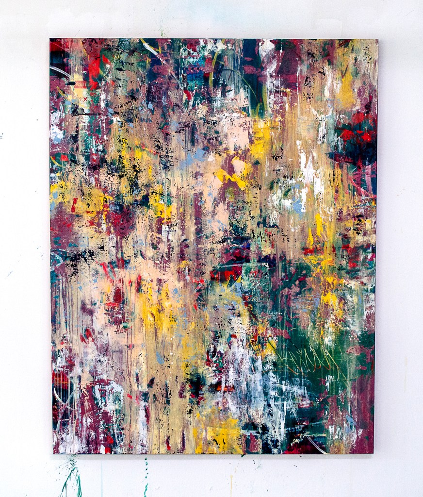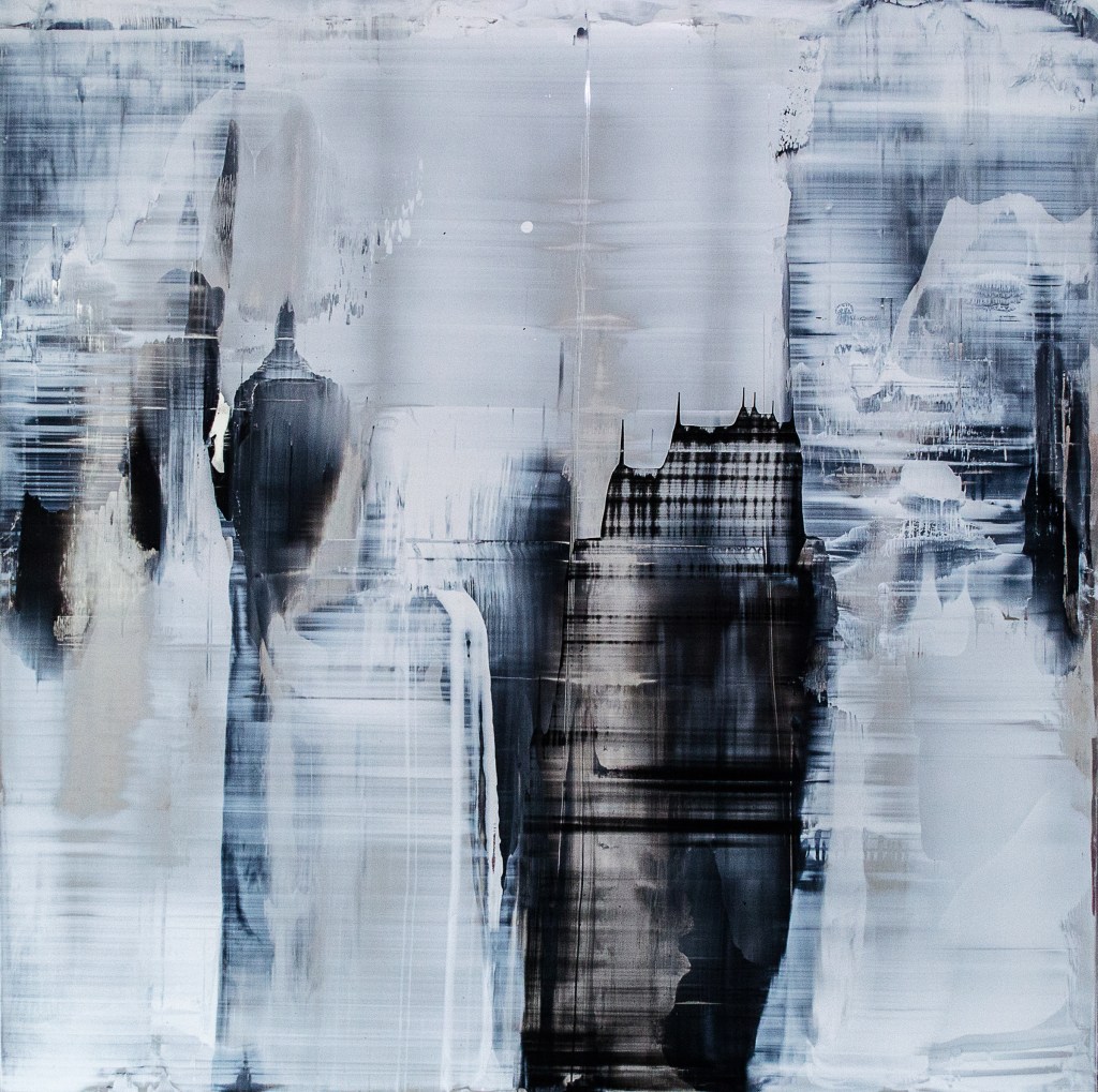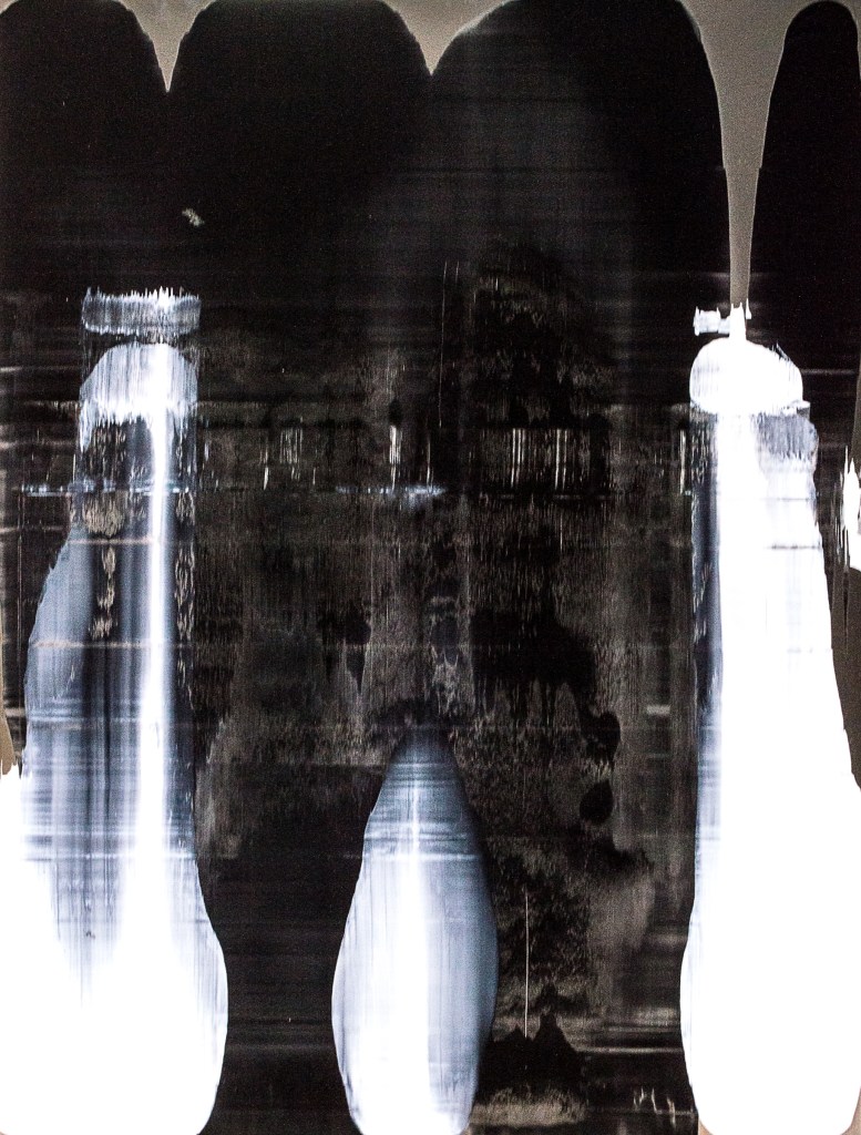 As I make these works I can’t help but think about light, particles and the way consciousness affects these things on a molecular and atomic level. The ‘Double Slit Experiment’ has shown us that light behaves and changes its nature from particles to waves – depending on whether we observe them or not. From recent global experiments with plants, it has also been observed that our frequencies, intent, sound waves and thoughts affect the behaviour of living things. That is to say, in my own personal practice; my consciousness affects the work. For example, the type of music I play in the studio : Influences my moods, which in turn, influences the work, and how the oil and mineral spirits – in the beginning – inert substances, wait patiently for an energy source, a murmur, which will determine its course in nature and the unfolding of its purpose.