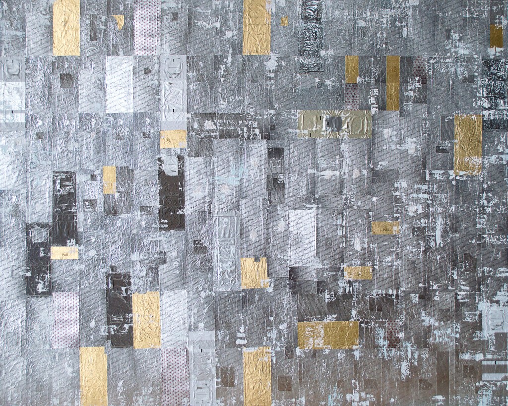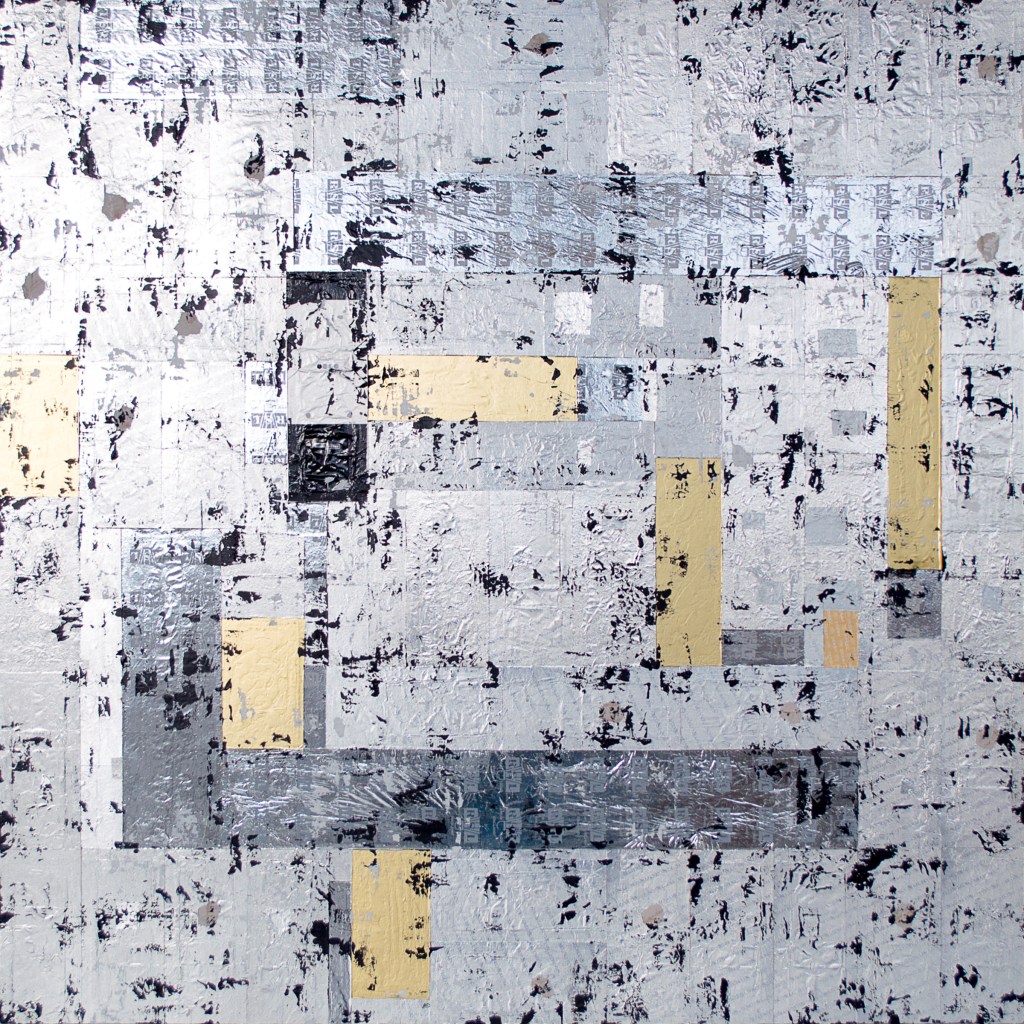 I began making aluminium works at the end of 2019. Constantly evolving the work through experimentation, the results intrigued me. With ‘Particles’, I have let go of the need to have things opaque and allowed the mediums transparency to show through. I wanted to highlight the reflective quality of the aluminium panels, finding a balance between form and suggestion. Instead of working on the floor (like before), for this body of work I made all the works at waist height : 30 inches. At this elevation, I found more control over the striations and in the medium. The balance between momentum and deliberacy are the elements that define the work, yet this mathematical and scientific process (to me), also sums up life and its myriad of choices. As an artist and as a student in the university of life, I am passionate and curious about these topics. With knowledge and understanding, we are able to cultivate and curate our own existences. We have access to a lot of knowledge which isn’t taught in schools or in higher learning establishments. The unseen laws and philosophies which have worked for a millennia is available to all who seek it and to test in their own lives through practice, training, faith and belief. For example, earths gravity is such, that an apple falls down instead of up. Consequently, trillions of bacteria and cells work in unison and in harmony to create the human body as we see it. We are the shells in which consciousness resides in.