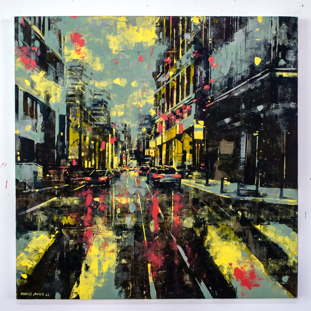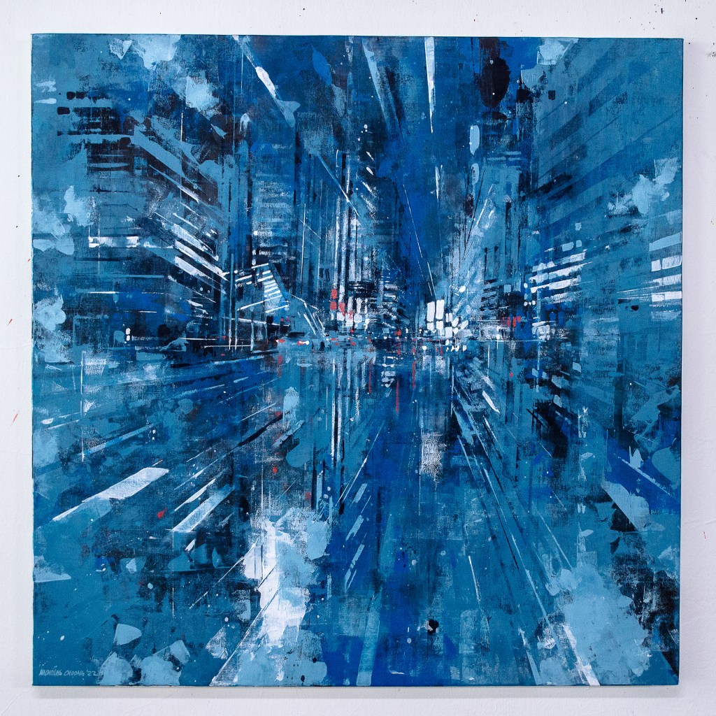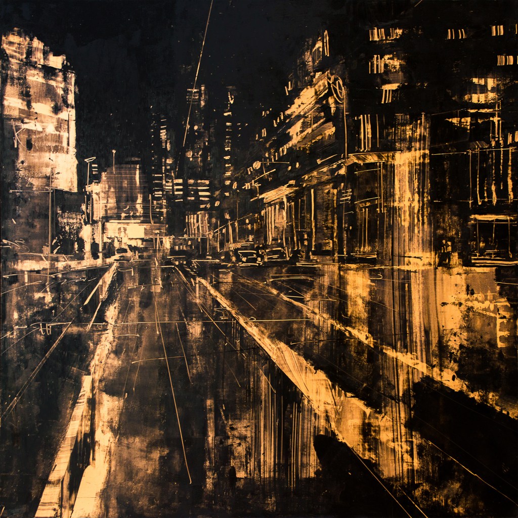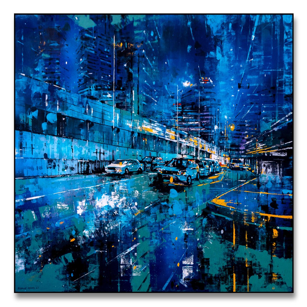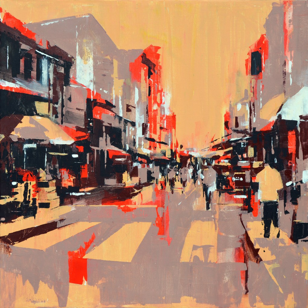 I’ve been painting Cityscapes for a number of years. There has been a constant refining to the techniques, palette and narrative – seeking to unify all disciplines in my creative endeavours; from harmony to mood. Emotion to objectivity. Composition to performance. Style and design to relevance. In essence, the works are meant to capture the monumental buildings and towers that are rife in any busy metropolitan city. They are a reminder that even in these overcrowded steel skylines, there is beauty and energy in everything.
