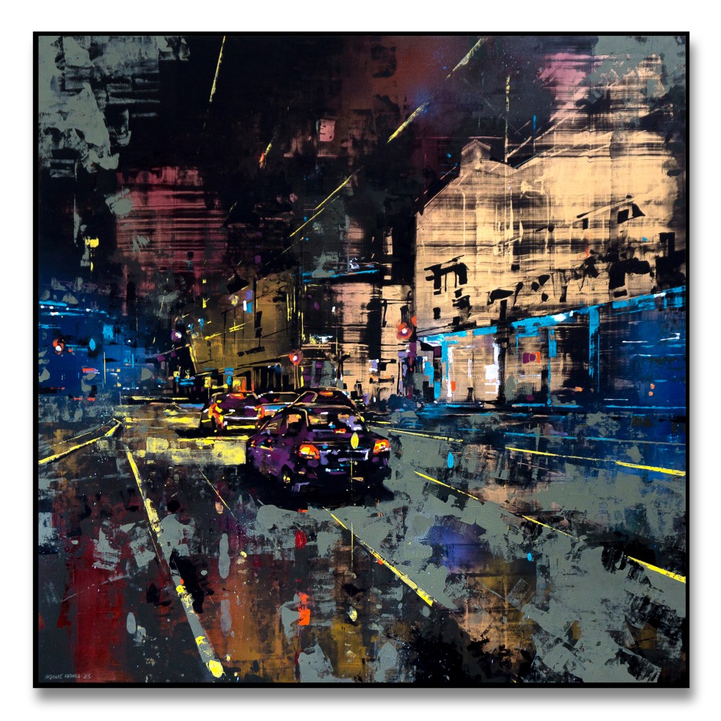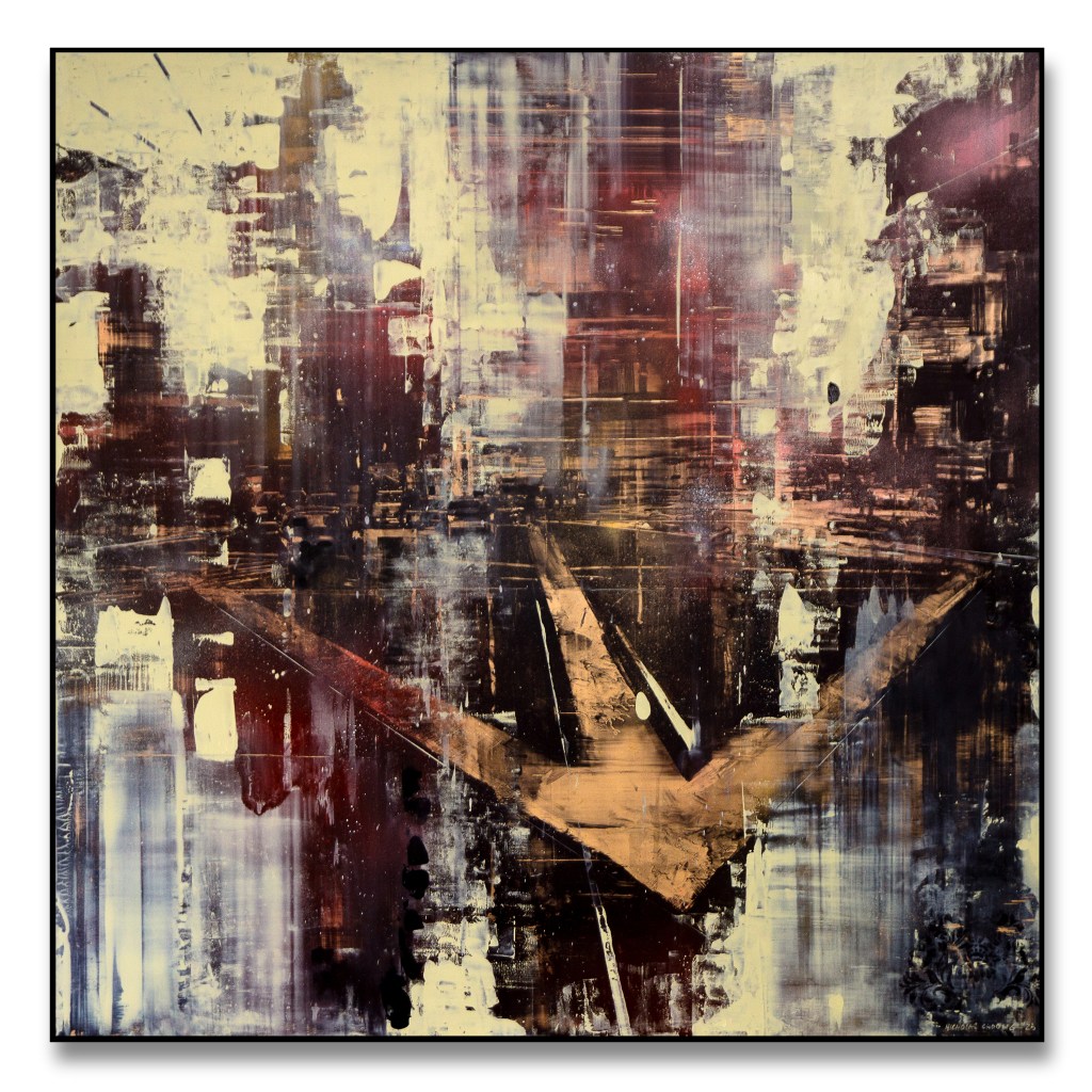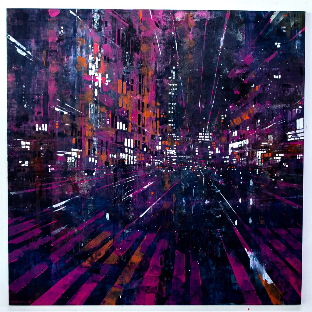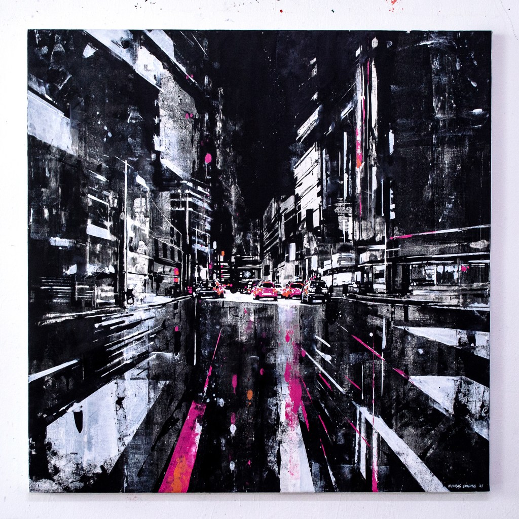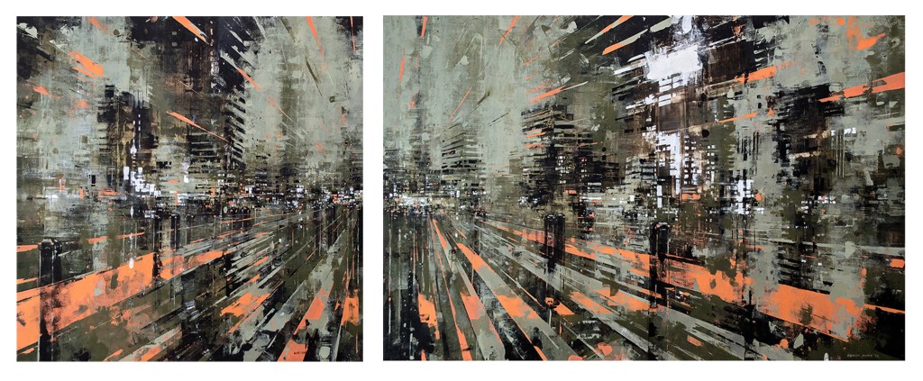I’ve been painting Cityscapes for a number of years. There has been a constant refining to the techniques, palette and narrative – seeking to unify all disciplines in my creative endeavours; from harmony to mood. Emotion to objectivity. Composition to performance. Style and design to relevance. In essence, the works are meant to capture the monumental buildings and towers that are rife in any busy metropolitan city. They are a reminder that even in these overcrowded steel skylines, there is beauty and energy in everything.
