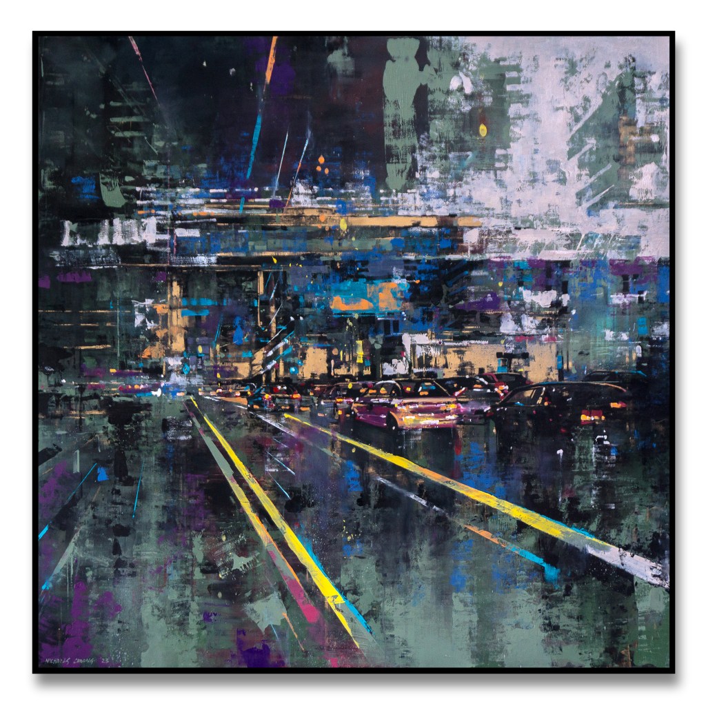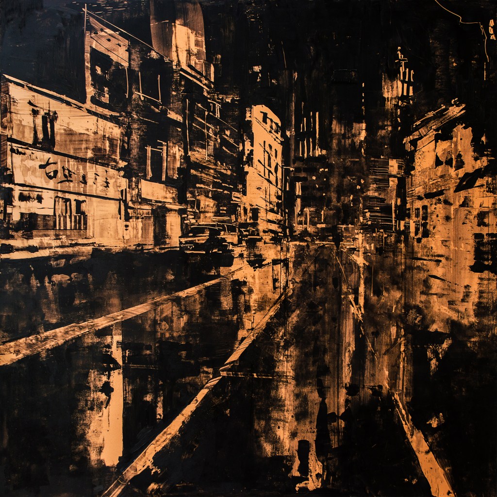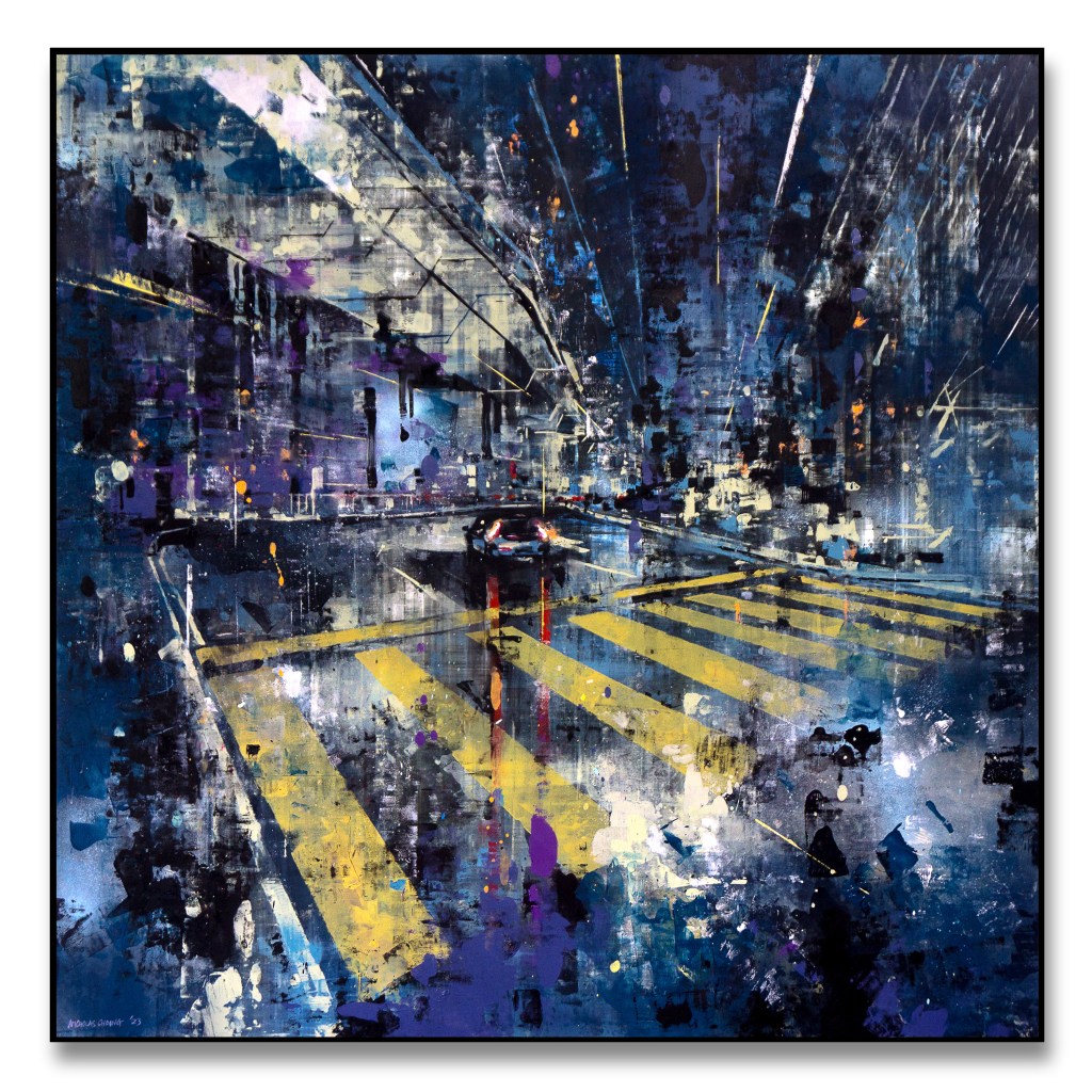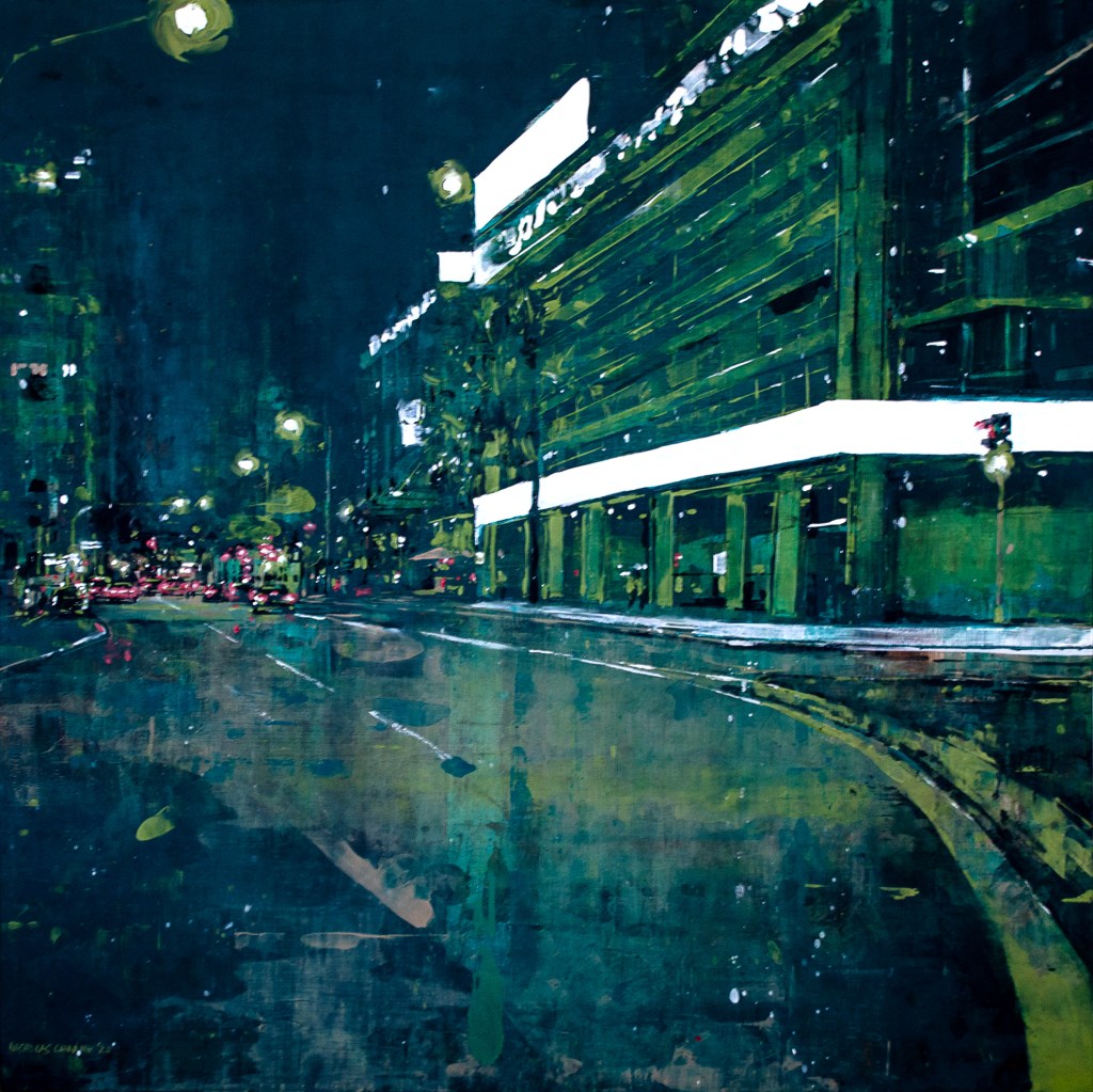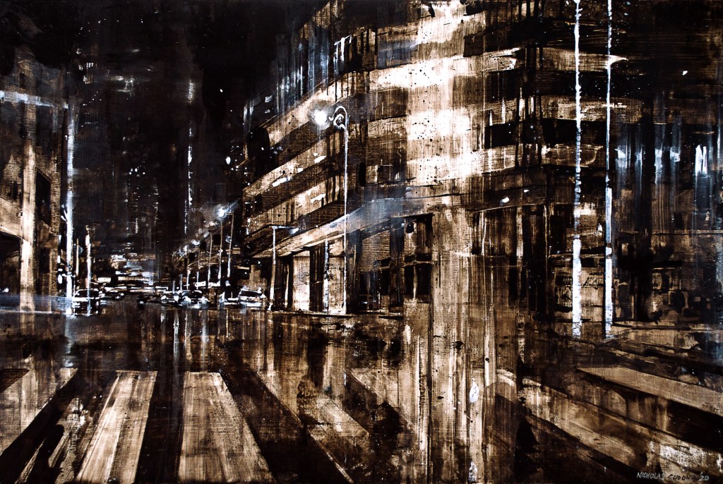 I’ve been painting Cityscapes for a number of years. There has been a constant refining to the techniques, palette and narrative – seeking to unify all disciplines in my creative endeavours; from harmony to mood. Emotion to objectivity. Composition to performance. Style and design to relevance. In essence, the works are meant to capture the monumental buildings and towers that are rife in any busy metropolitan city. They are a reminder that even in these overcrowded steel skylines, there is beauty and energy in everything.