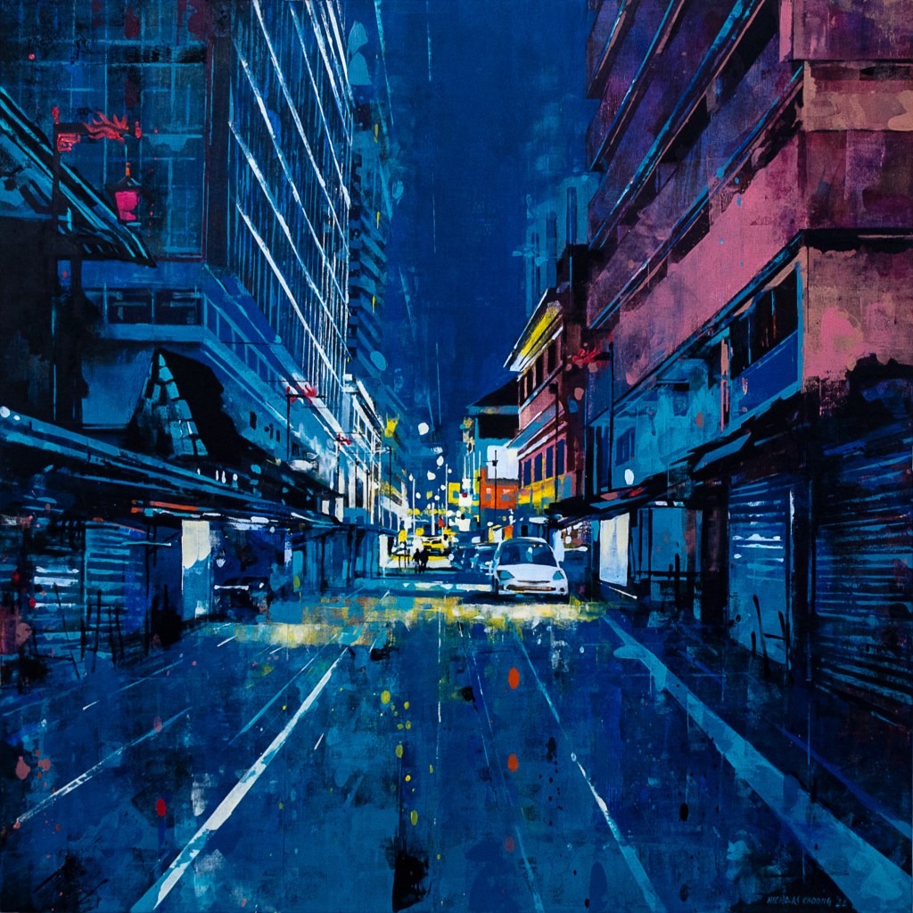 ‘KL 47’ (Jalan Tun HS Lee, KL), 48×72 inches, Oil on board, 2019, Sold.